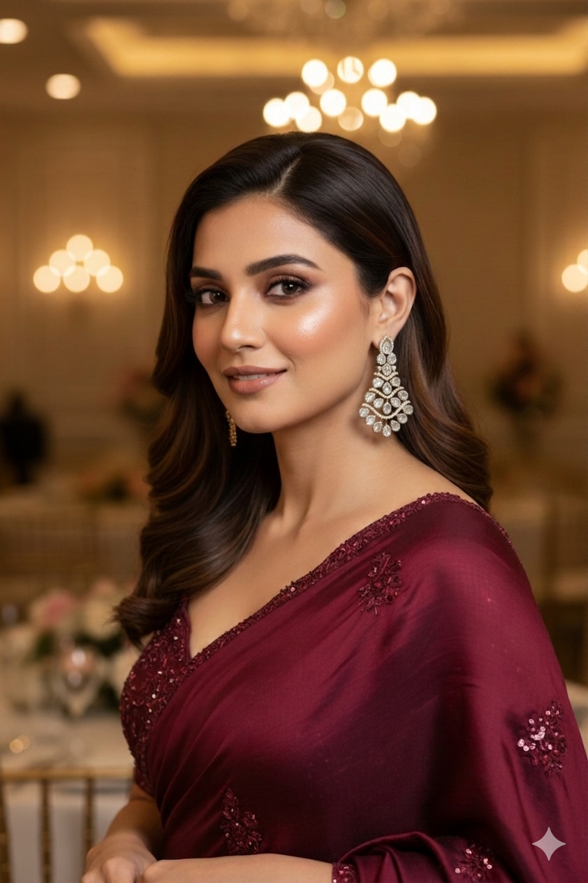 Keep your hair open or in a low bun to let the earrings stand out beautifully.